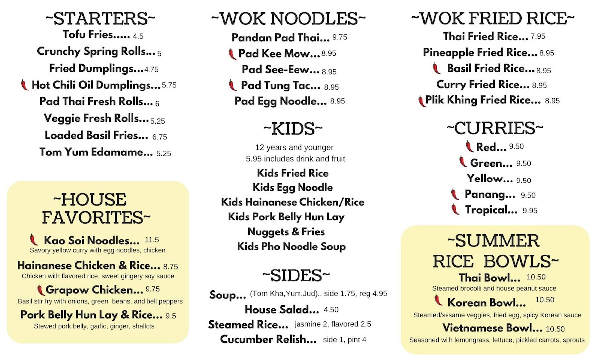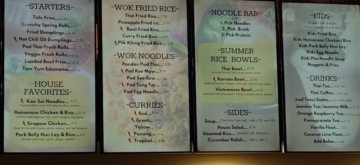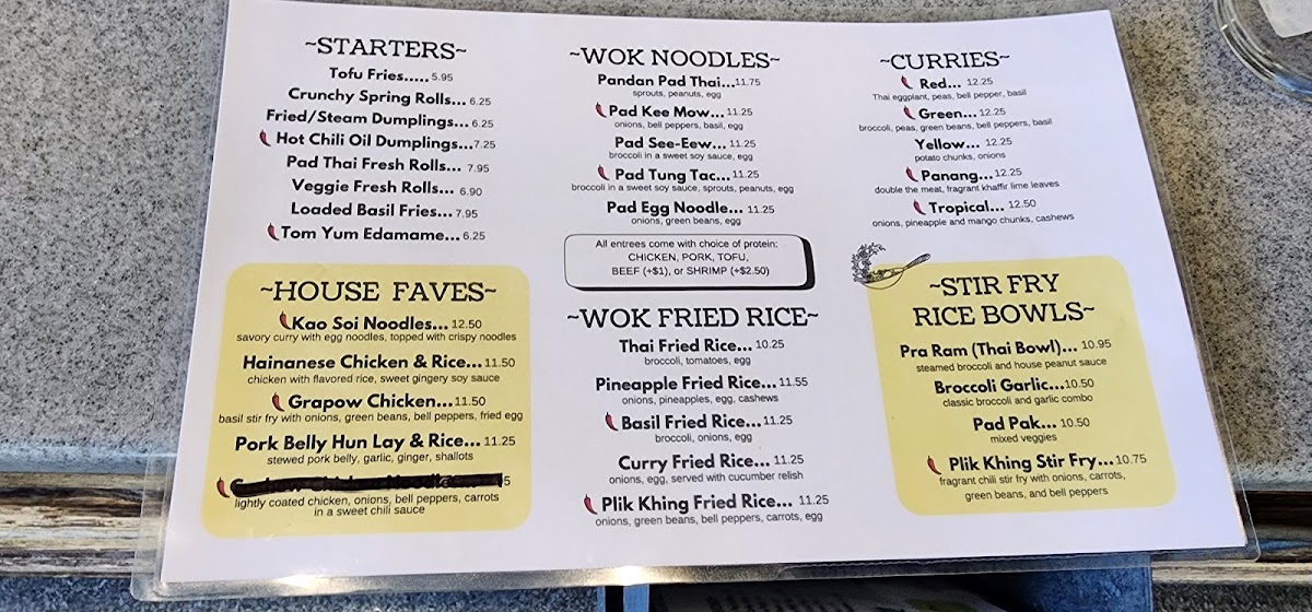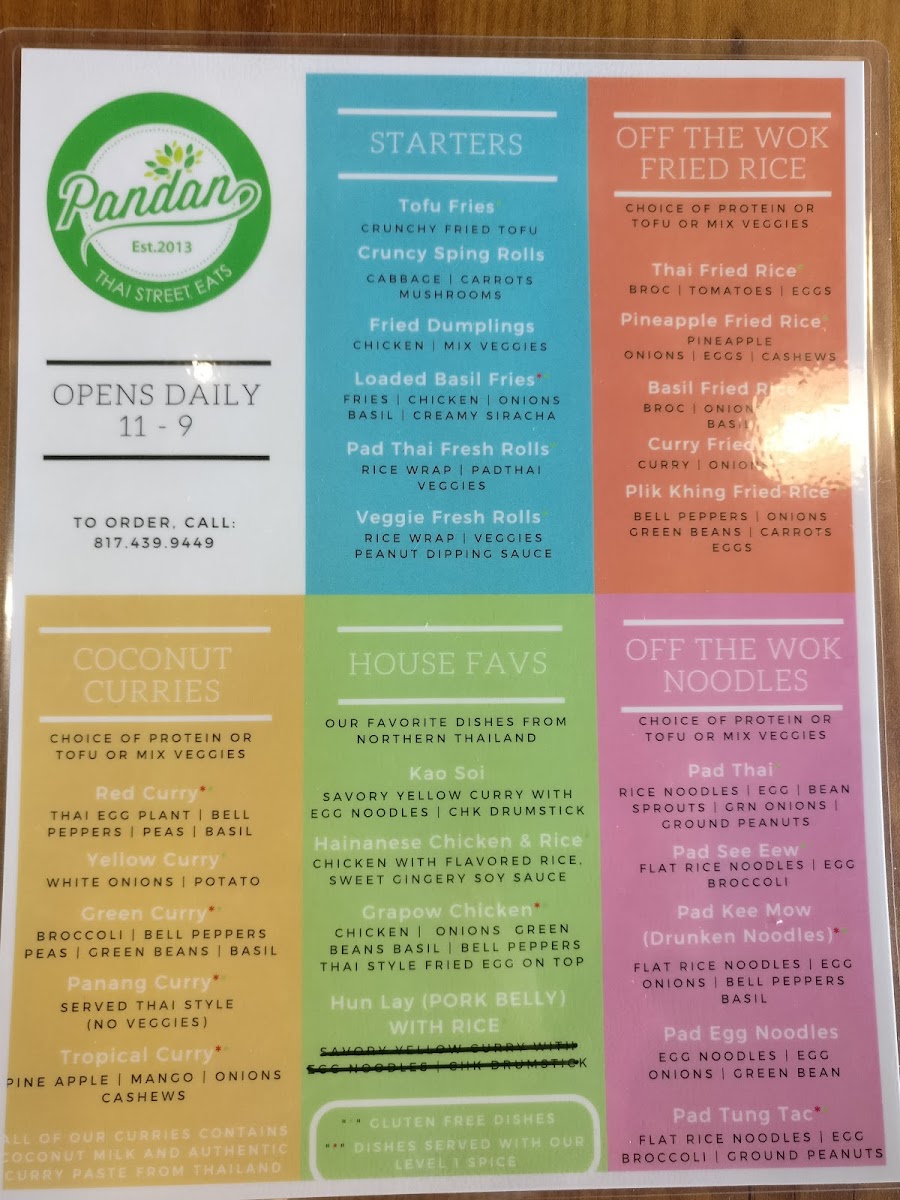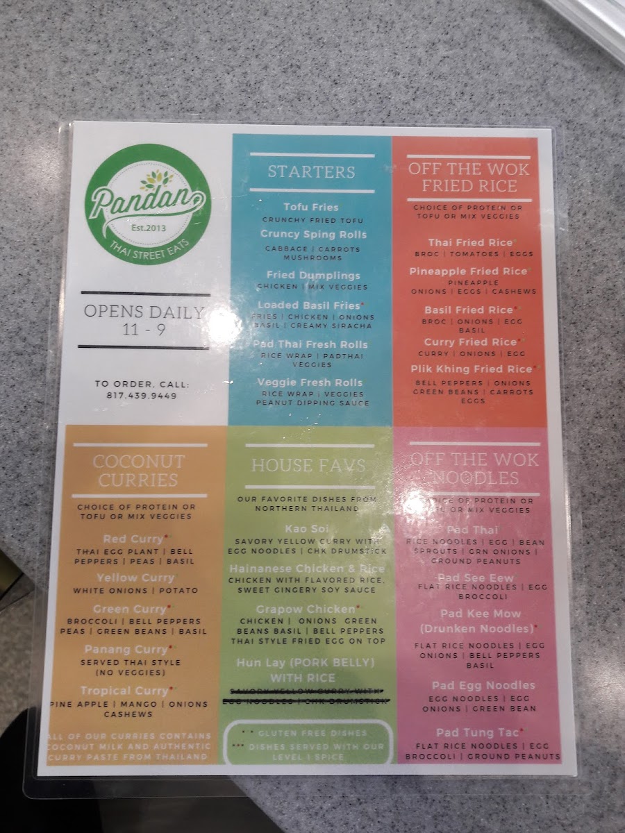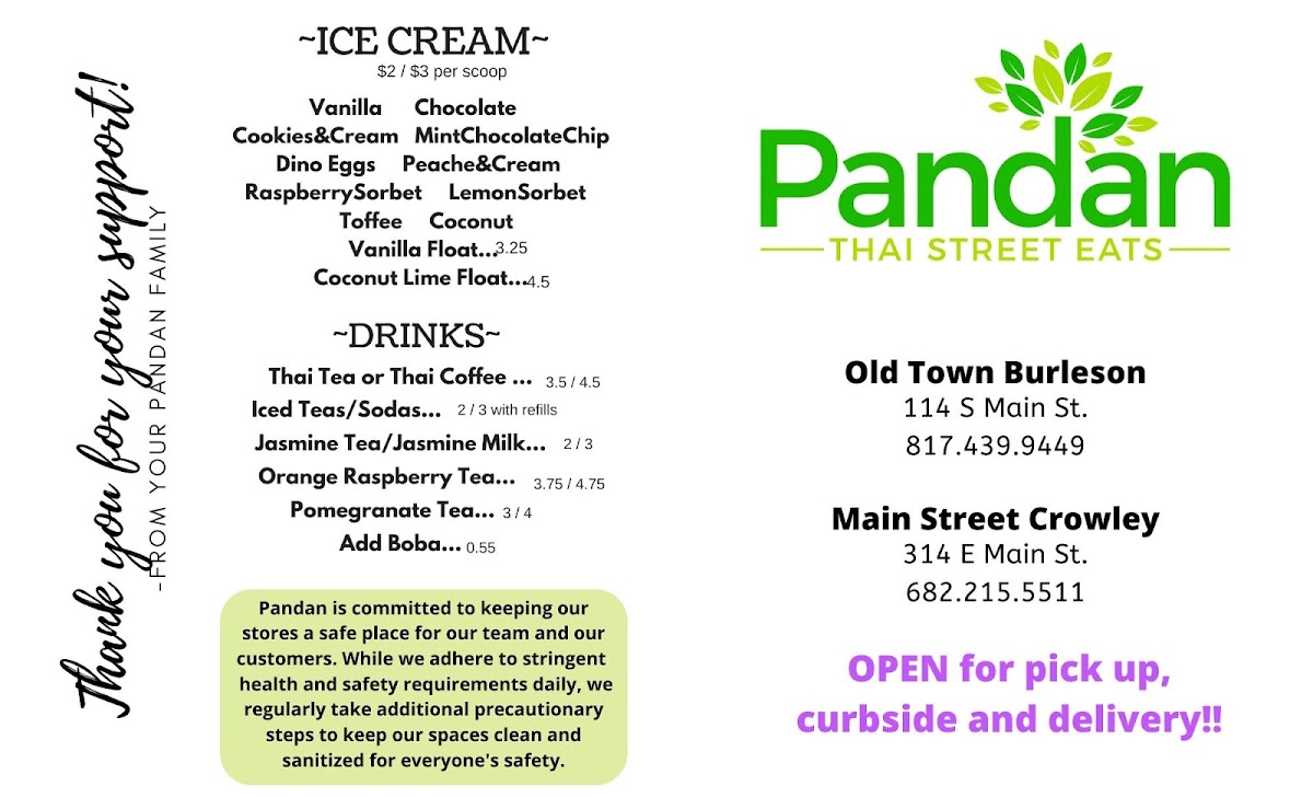 Pandan Thai Street Eats Menu